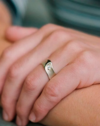 Jeder Ring kann individuell angepasst werden: in der Breite und Stärke ebenso wie beim Steinbesatz, bei der Goldfarbe oder der Oberfläche.