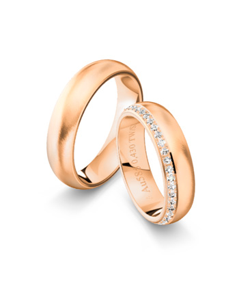 Jeder Ring kann individuell angepasst werden: in der Breite und Stärke ebenso wie beim Steinbesatz, bei der Goldfarbe oder der Oberfläche.